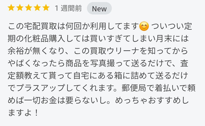 ※ウリーナのご利用が初めてかつ、1万円未満の買取の場合