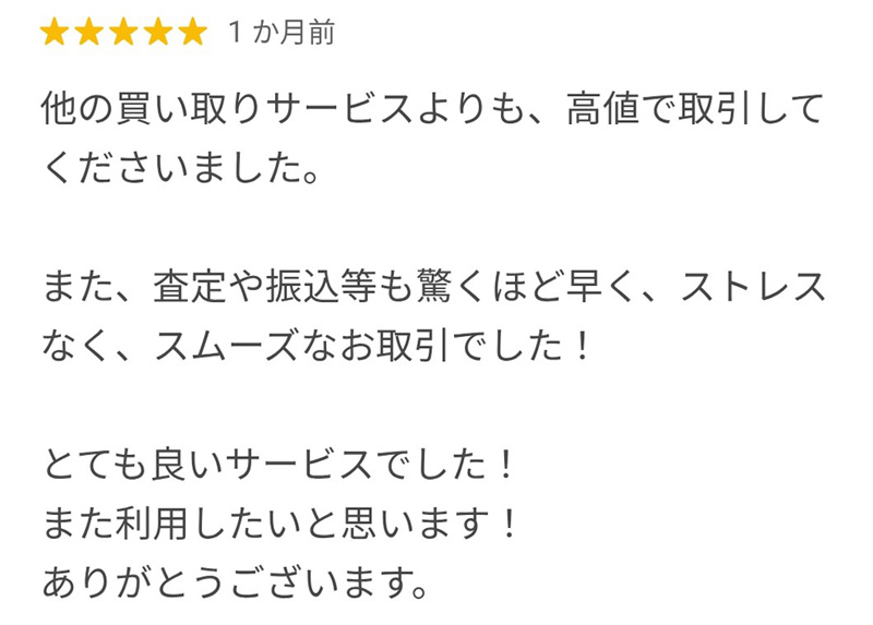 金額にご納得頂けない商品がある場合は、お気軽に返品をご依頼下さい。