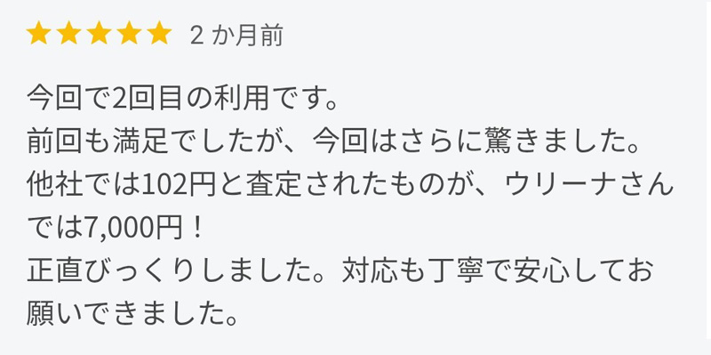 ※実際にウリーナで買い取った実績(複数個の場合もあります)