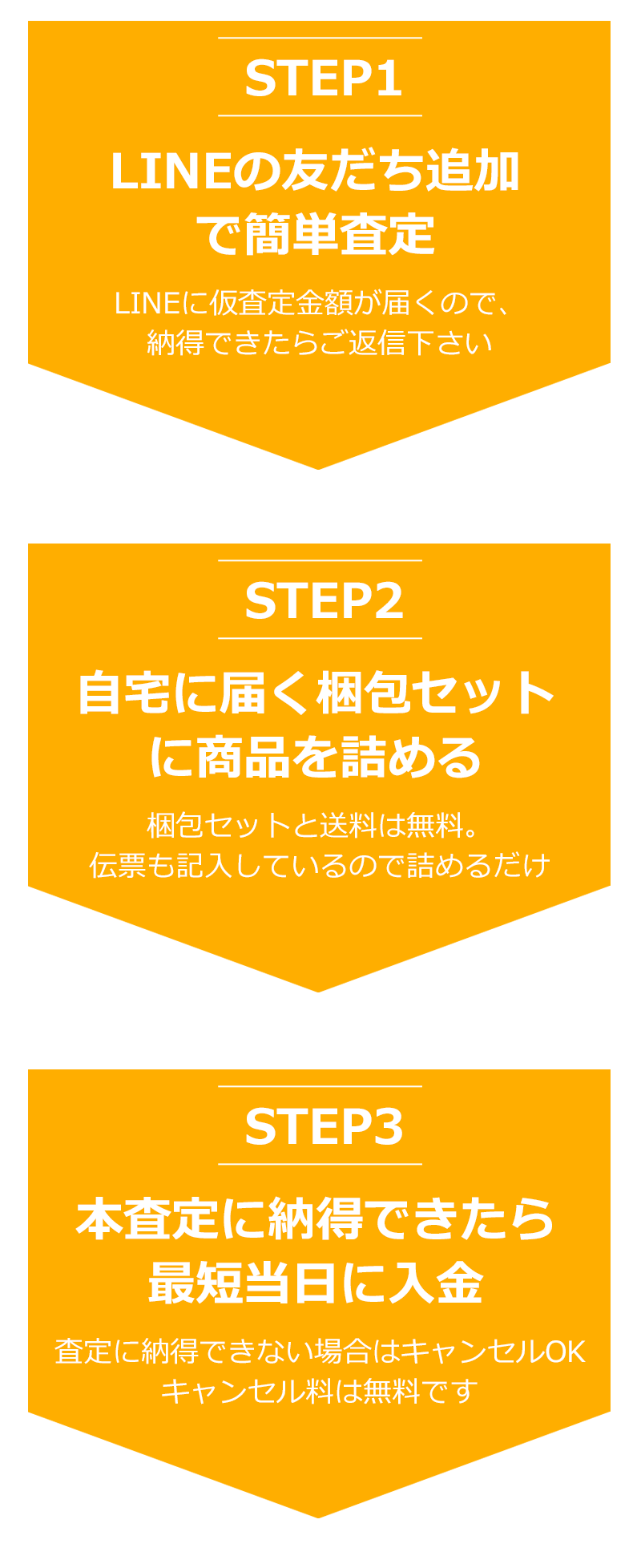 LINEでの査定はあくまでも写真を見て判断する簡易的な査定です。お送りいただいた商品が弊社に届き、弊社が目視で商品を本査定した金額が確定金額となります。